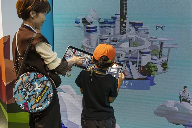 地域社会の課題解決に資するプラットフォームとしてスマートポールを展示します。拡張現実上で自分自身のキャラクターを生成し、モビリティ・防災・観光等のスマートポールのソリューションを体験するなど、サイバー・フィジカル融合の展示を予定しています。