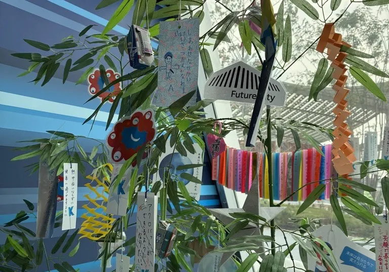コンセプトは「世界樹」。人と地球を支えるエナジーの源です。世界樹の世界に入り込むと、皆さんが起こす資源循環の行動と、わが社の脱炭素技術が融合した世界のストーリーが繰り広げられます。
